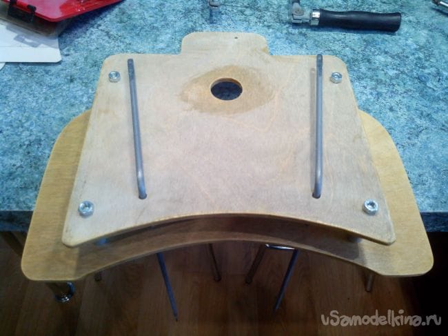 Если вид шляпок болтов под руками не нравится, можно сверху добавить накладки, обтянутые кожзамом, но я этого сознательно делать не стал - чтобы руки не потели.