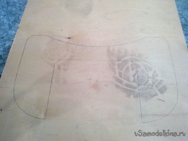 Следы сапог – по причине того, что данный кусок фанеры является подложкой под стройматериалы, которую я купил в строительном магазине за 20 рублей. Но они легко убираются наждачкой.