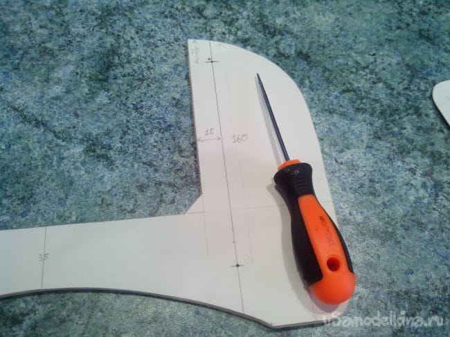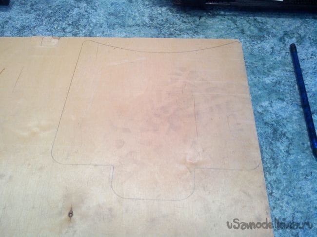 Прикладываем шаблон верхней части к фанере и обводим карандашом. Маркеры, которые идеальны для потолочной плитки, для этого не рекомендую – они сильно впитываются в древесину и контуры теряются.