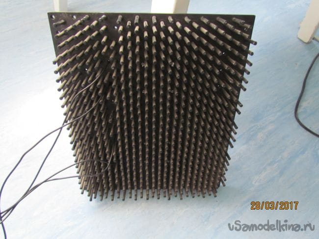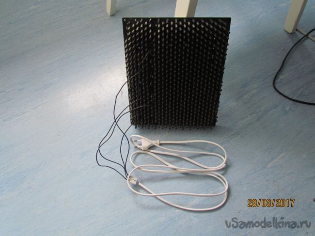 Далее припаиваем провода питания к матрице и соединяем со шнуром питания параллельно.