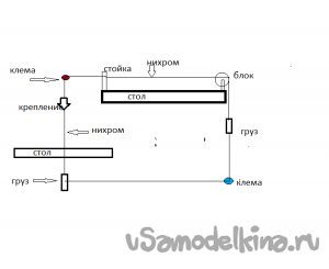Шаг 5: Берём нихромовую проволоку, и привязываем ей к "ушкам". Нихромовую проволоку можно взять: в кипятильнике, в фене, в старом паяльнике ( я взял из него). Чтобы натянуть проволоку я поставил небольшую распорку из кусочка ветки. Вставляем крону, и можно резать!!!