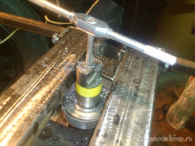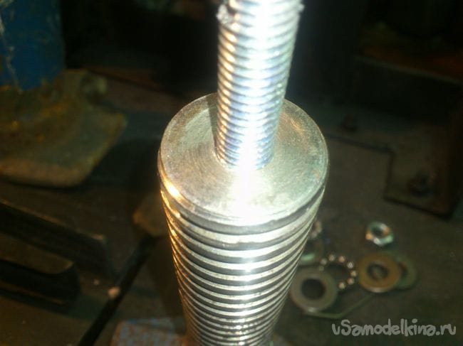 В центр вставил резьбовую часть, отрезанную от поршня домкрата: