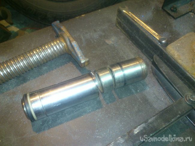 Винт в домкрате вкручивался в поршень. Я отрезал от него верхнюю часть (с резьбой) и ещё одно кольцо, шириной 20 мм.