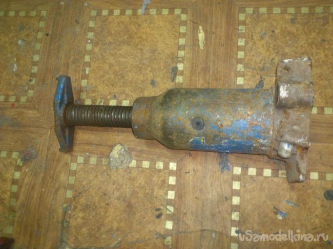 После этого я приступил к изготовлению центрального винта. Его я взял из старого гидравлического домкрата, который нашёл на металлоломе. Когда я убедился, что он уже никогда не будет домкратом, я решил его использовать.