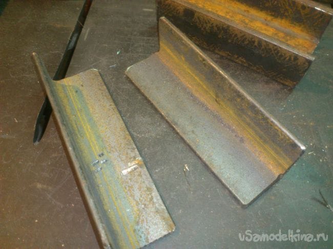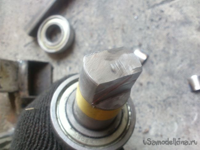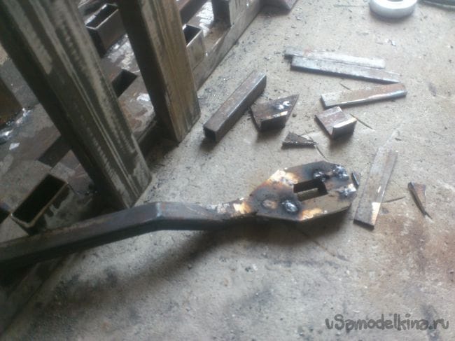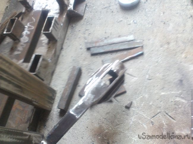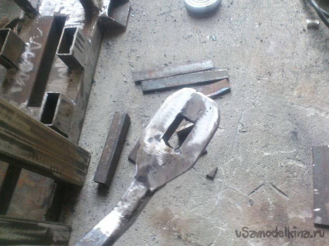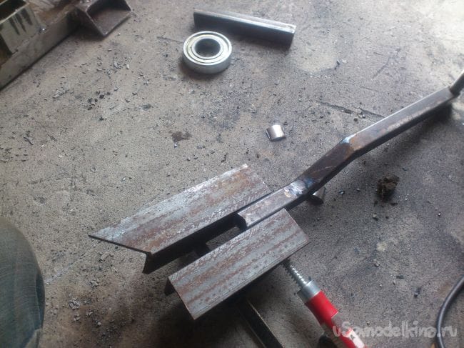 Теперь надо сделать ступицу на рукоятке. Я использовал обрезки уголка:
