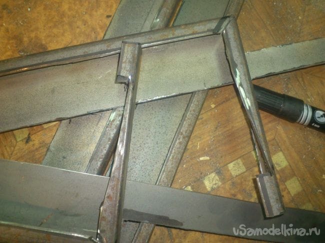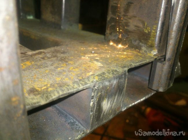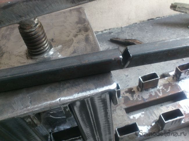 Далее я приступил к изготовлению станины. Её тоже собрал из профильной трубы. Сечение взял 60 на 30:
