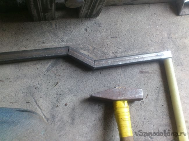 Теперь на самом рычаге нужно сделать изгиб - трубогиб будет устанавливаться на краю стола или верстака.