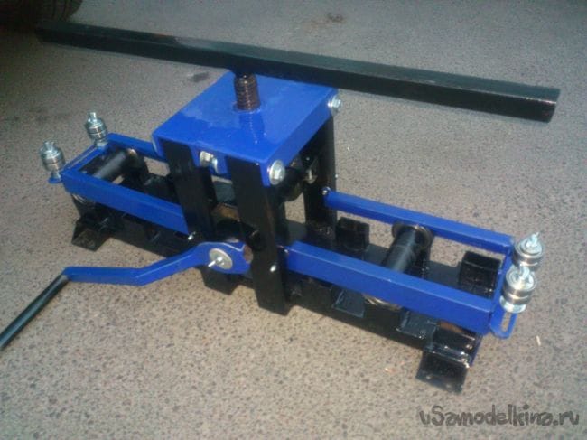 Если сделать ведущим центральный вал, то есть возможность легко изменять расстояние между крайними, что даст дополнительную регулировку работы в зависимости от сечения (а значит жёсткости) различных профильных труб.