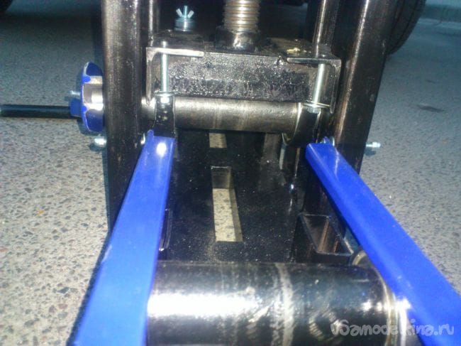 При этом "зуб" с каждой стороны защёлкнется внутрь торца профильной трубы, из которой изготовлена нижняя платформа: