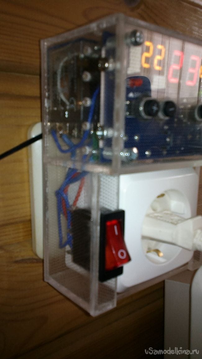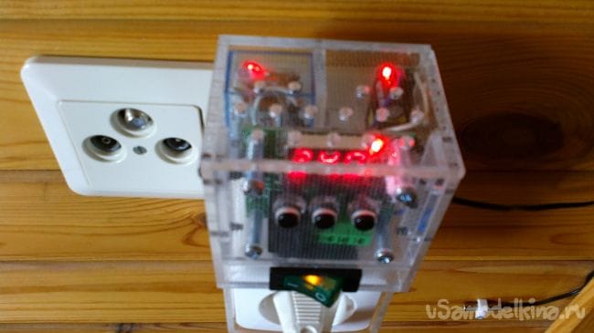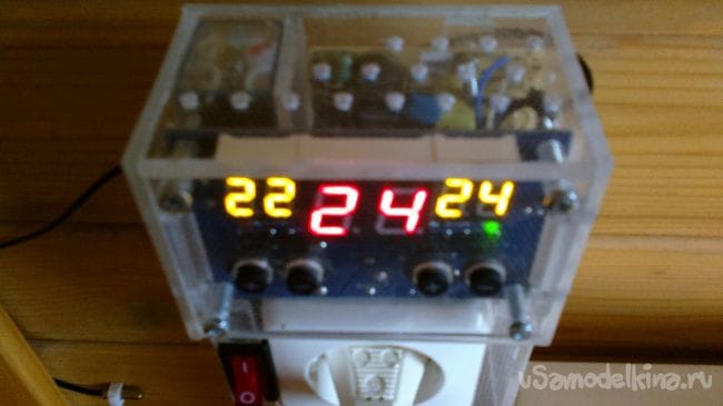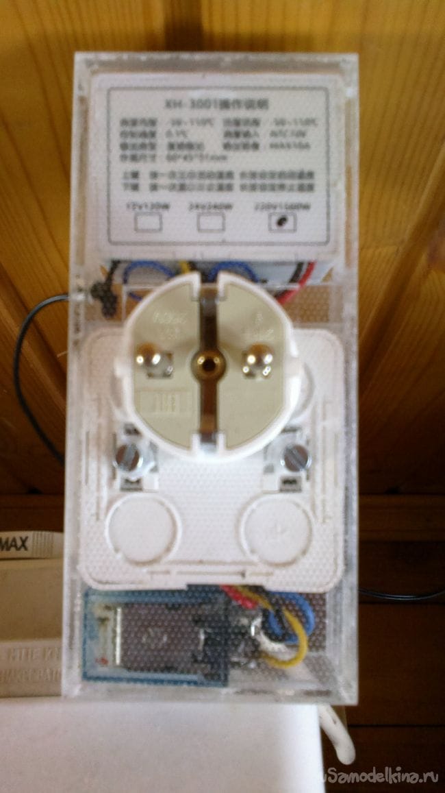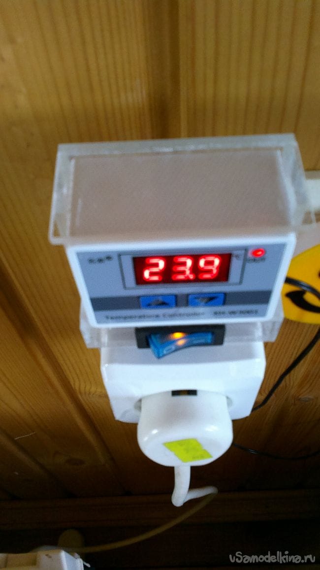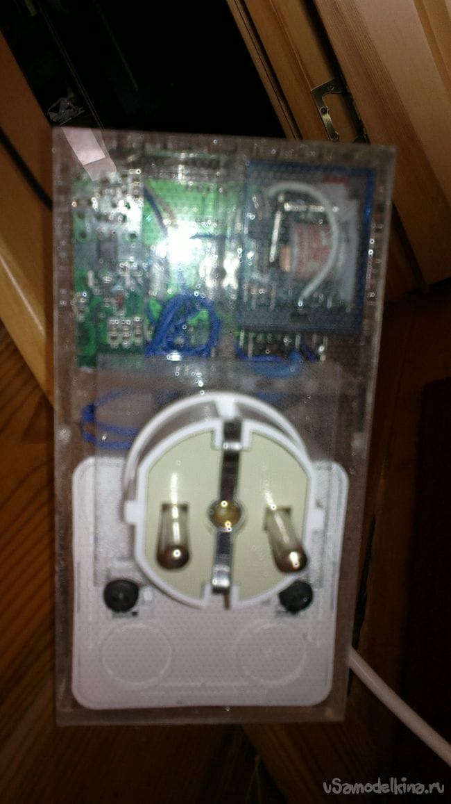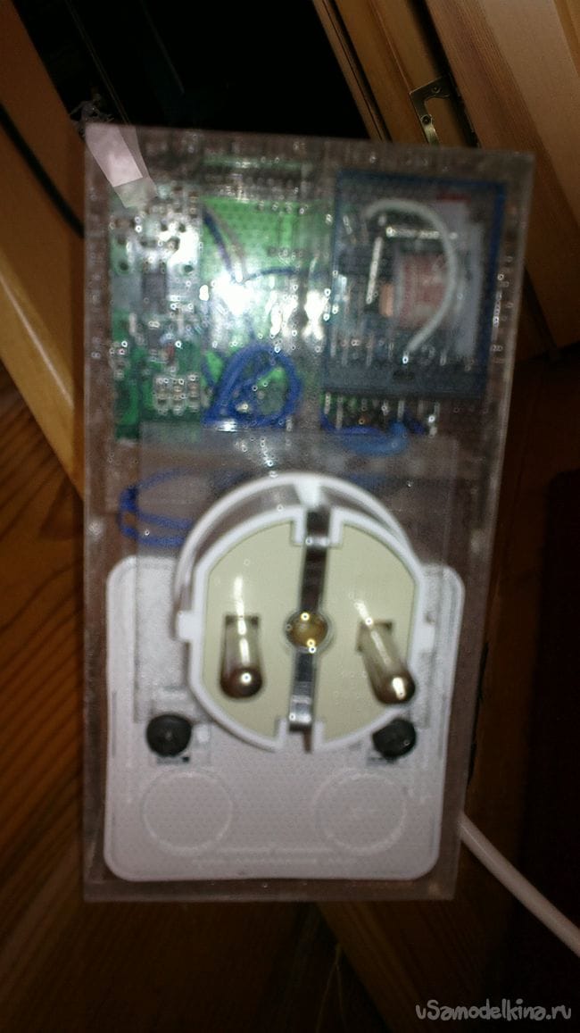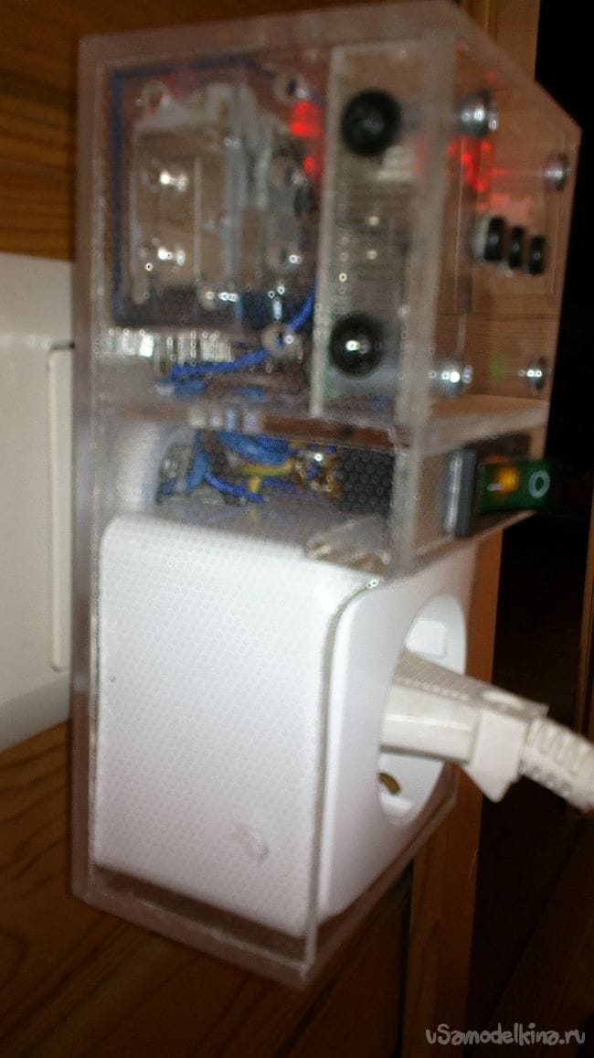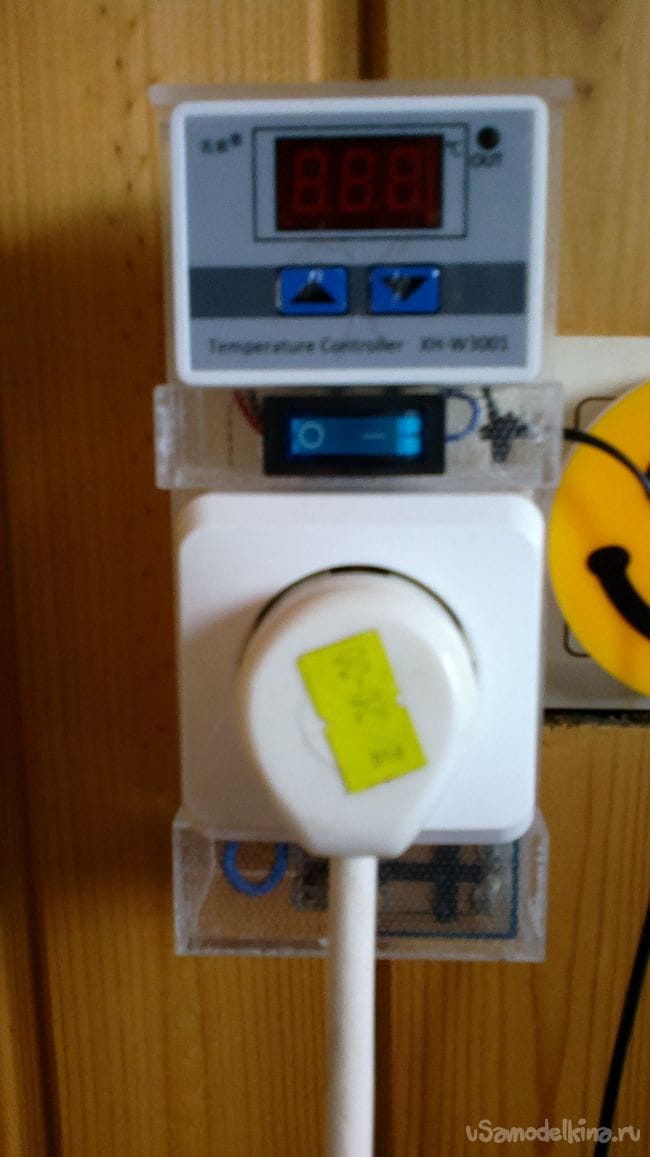 Терморегулятор для дачного обогревателей. Представляет, как переходник между розеткой и вилкой обогревателя. За основу взяты готовые платы (заказаны на AliExpress). Платы все разные, было добавлено дополнительное реле для увеличения мощности. Корпуса регуляторов выполнено из акрилового стекла (прозрачного пластика).