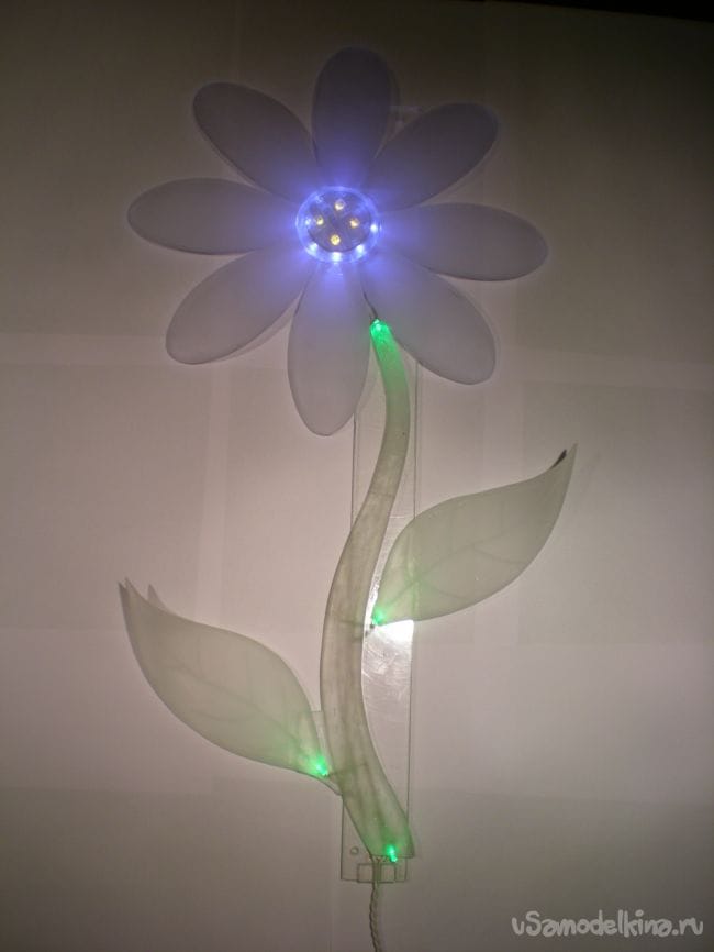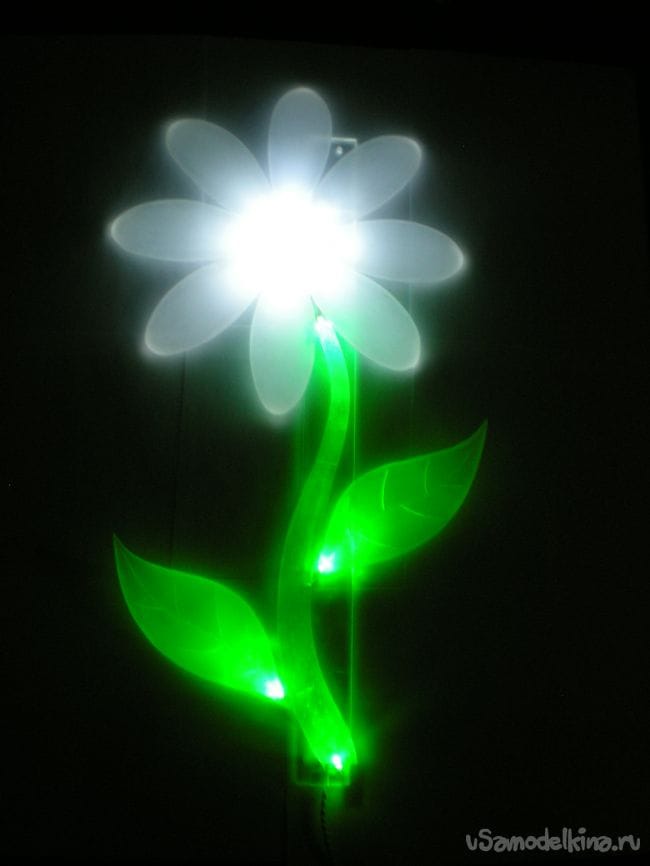 Светильник ночник Aleksei2121 13-04-2017, 04:27 Светильник ночник. Сделанный из акрилового стекла (прозрачного пластика) толщиной 5мм. Лепестки и листья изогнуты. Для подсветки используются яркие светодиоды