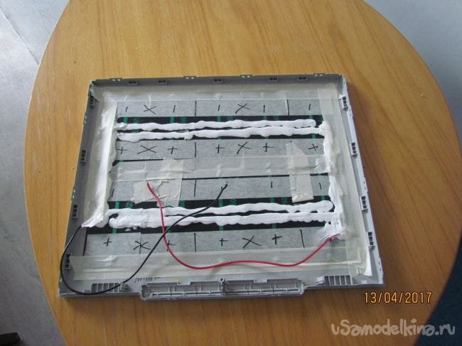 Далее вставляем пустую рамку матрицы в нее укладываем мягкий поролон.