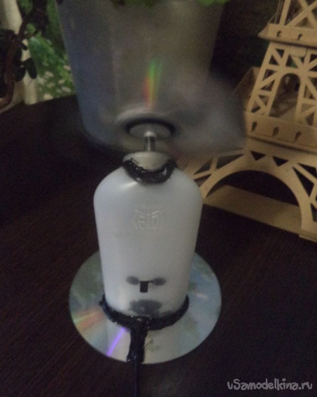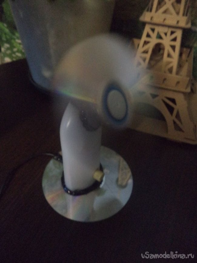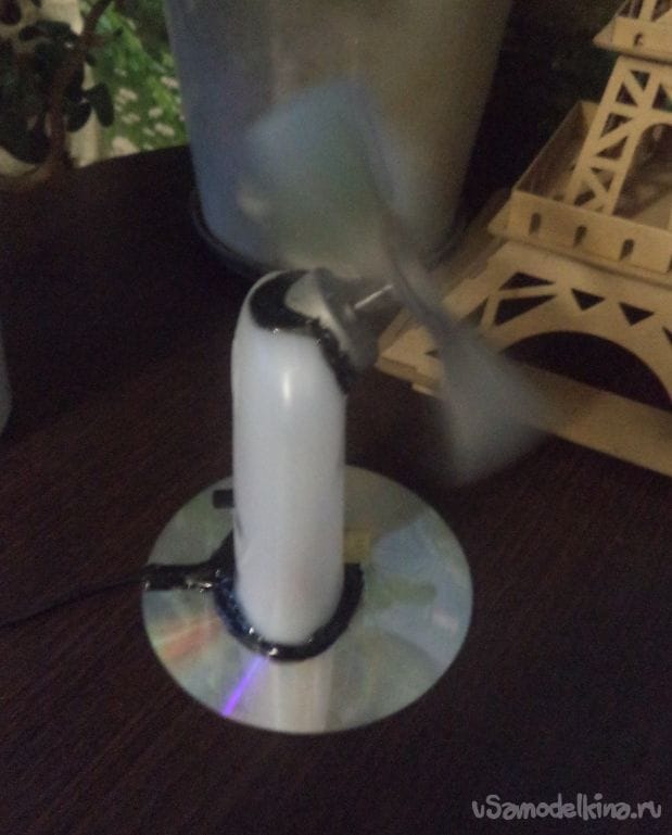 Прикрепляем крыльчатку к моторчику и самодельный вентилятор с регулируемой мощностью готов. Осталось лишь его немного испытать, поиграться с ней.