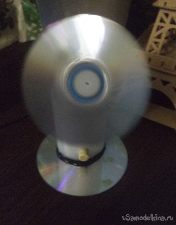 С помощью клеевого пистолета термоклеем приклеиваем весь корпус к CD диску.