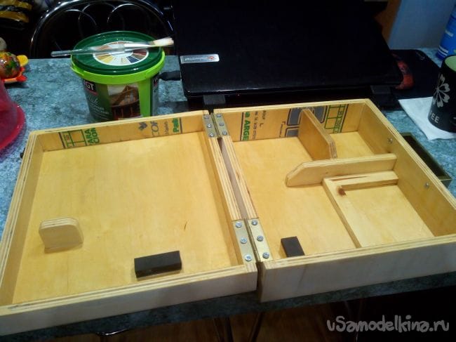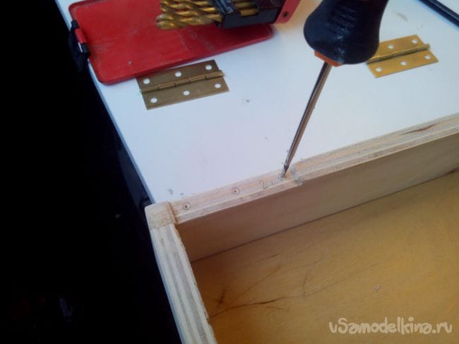 Прикручиваем замки к обеим половинкам чемоданчика.