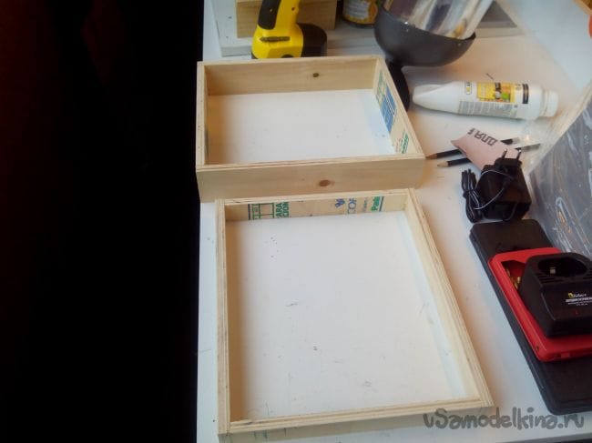 Затем склеиваем рамки из боковин и оставляем сохнуть.