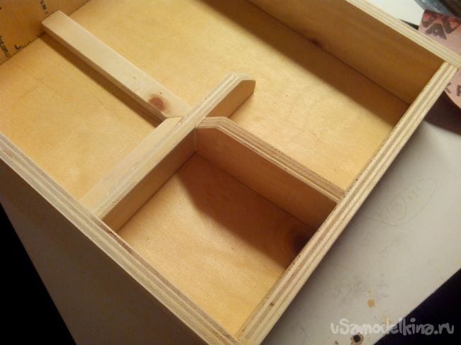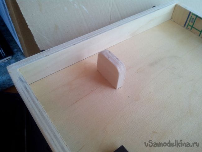 Из толстой фанеры выпиливаем перегородку-фиксатор для зарядного устройства