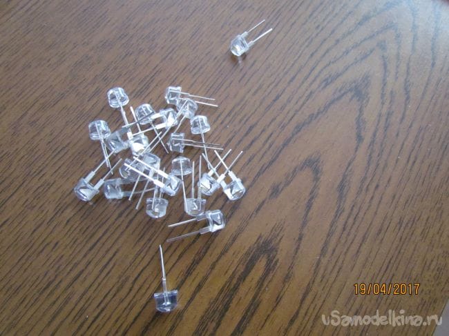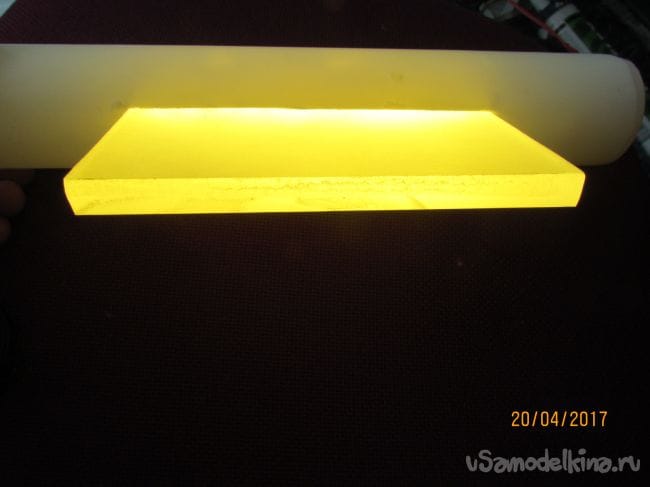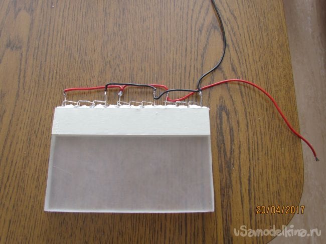Для этого нам нужен кусок оргстекла 10 см на 15 см толщиной 1 -2 см, 12 светодиодов диаметром 8 мм и мощностью 0.5 ватта.