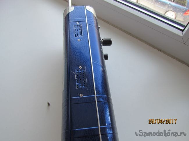 Батарейки устанавливаем внизу корпуса. Антенну приклеиваем внутри корпуса сзади, там она не будет мешать блоку УКВ.