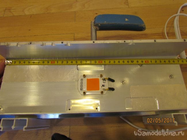Прошлый мой светильник на 100 Вт не выдержал испытания временем и стал греться больше 90 градусов по цельсию я убрал оттуда одну матрицу 50 Вт.