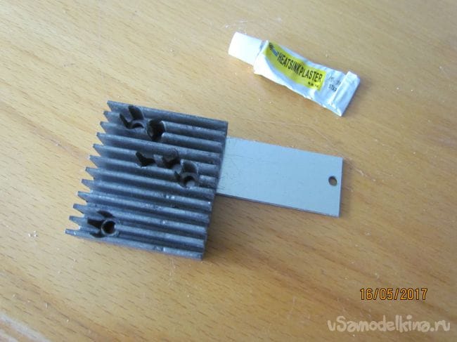 Радиатор распиливаем пополам и приклеиваем к плате.