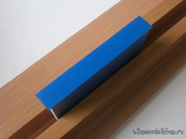 Оклеиваем детали кромкой. Для этого её кусочек сильно прижимаем горячим утюгом, и пока клеевой состав расплавился и стал липким, растираем его войлоком.