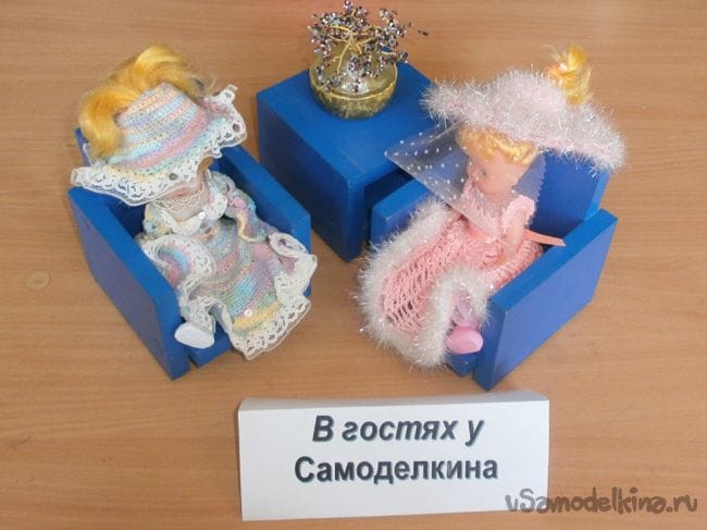 А что если сделать её самостоятельно? Что, если сделать её не похожей на игрушечные образцы, а целиком и полностью приблизить их к настоящим? Ведь шьём и вяжем мы уникальные наряды, сами придумываем элементы украшений и сооружаем немыслимые причёски. Ну а что мешает сделать два кресла и небольшой журнально-кофейный столик? Ничего, поэтому муж (сын, брат, отец или просто друг), должны нам в этом помочь, тем более что это очень и очень просто.