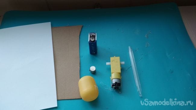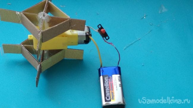 Берём наш источник питания и подсоединяем его к редуктору через выключатель: