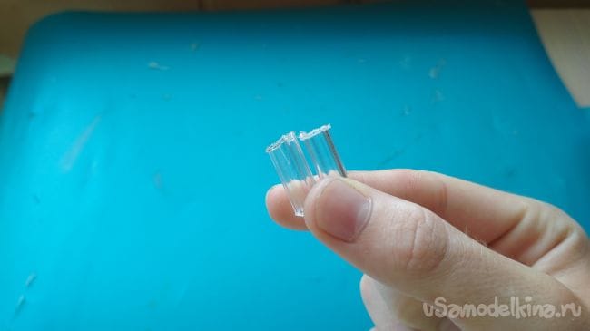 Затем от трубочки от ручки отрезаем два одинаковых кусочка примерно по 1,5 см в длину: