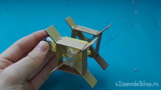 Приклеиваем его к нижней части редуктора, так чтобы выступало примерно 4 см: