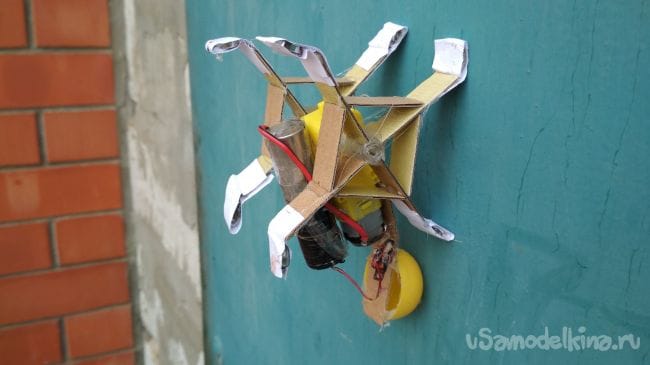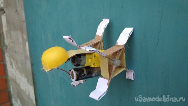 Ну вот и всё, наш робот "стенолаз" готов и осталось только его протестировать! Данный робот из-за тяжести аккумулятора двигается по стене очень медленно, но двигается! К тому же он довольно шустро передвигается по земле, думаю такая игрушка понравится детям.