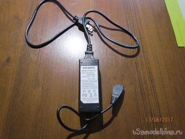 Блок питания для него с адаптером подключения к USB. Блок брал здесь.