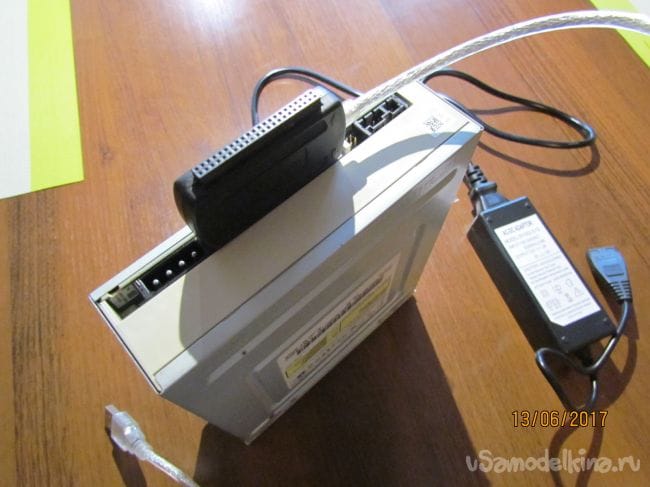 Наш дисковод готов к работе .Вставляем шнур в USB и включаем в розетку .