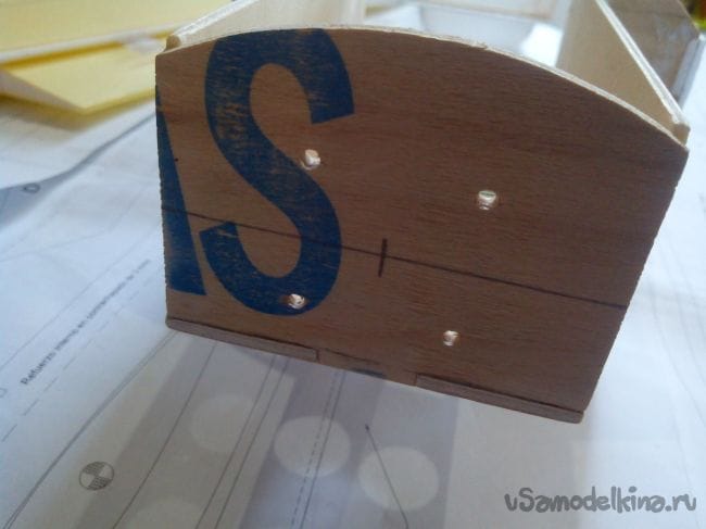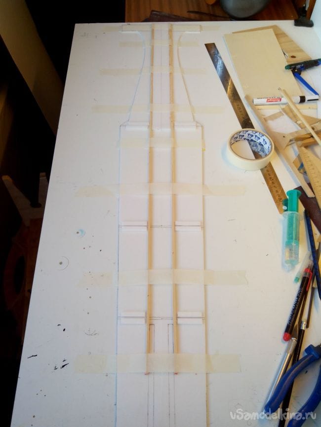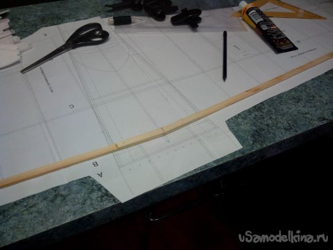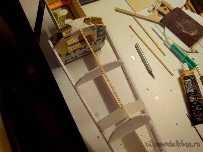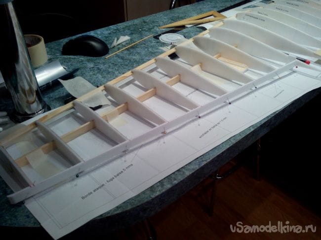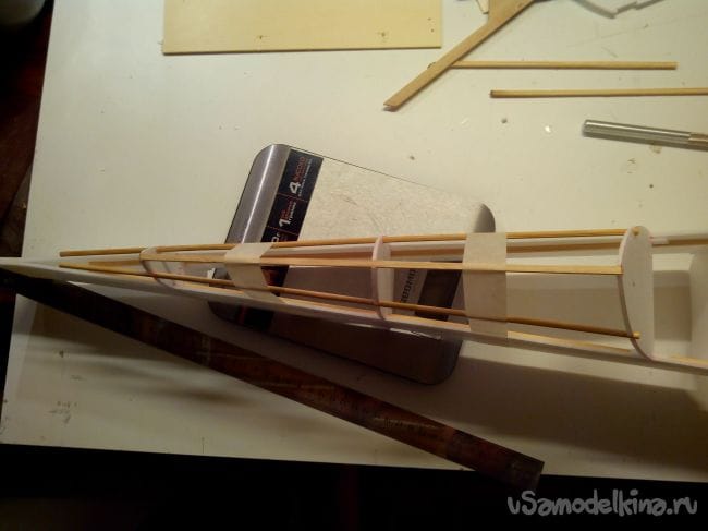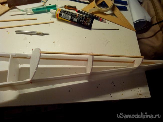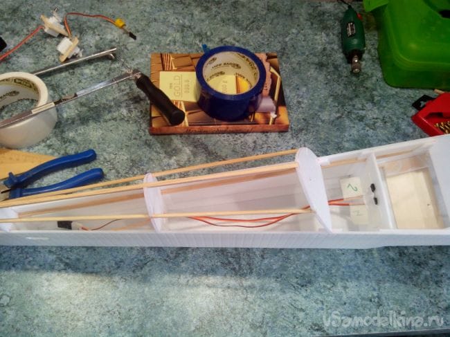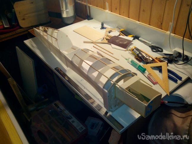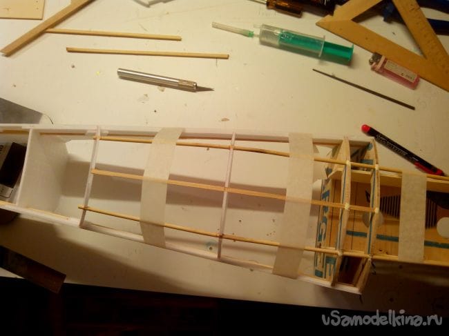 Добавляем из полосок депрона усиления для шпангоутов.