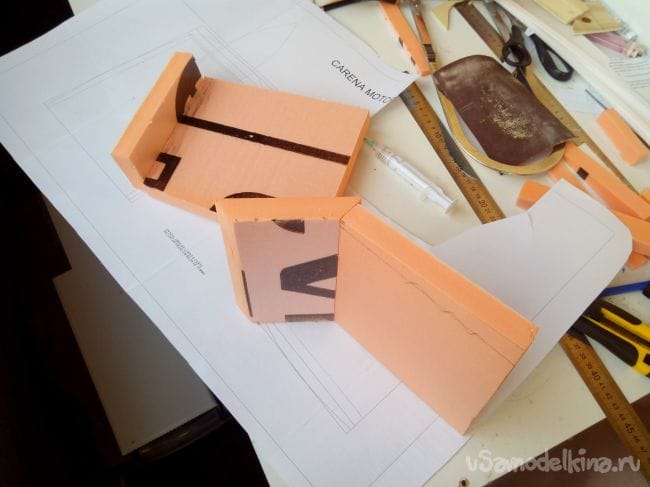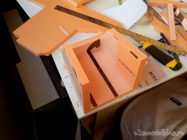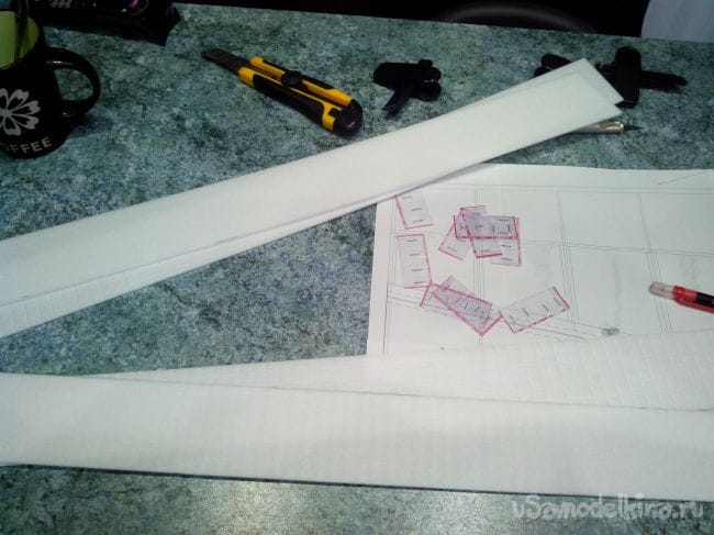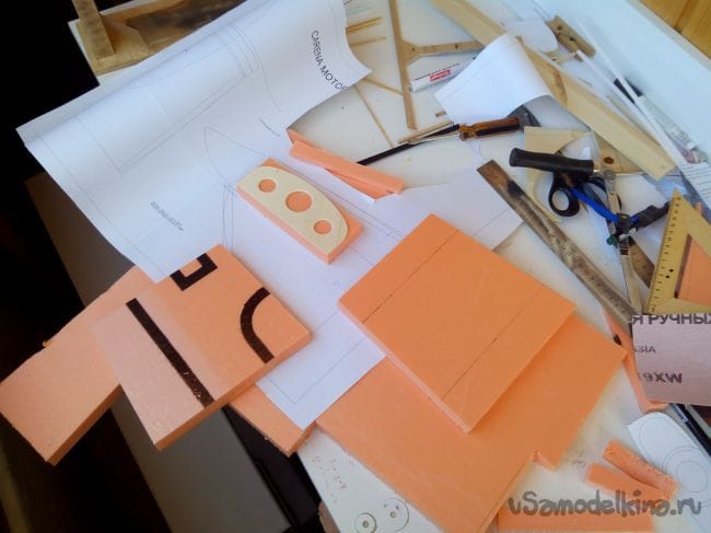 Из того же пеноплекса вырезаем детали по чертежу.