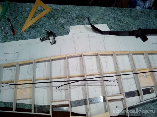Центральные нервюры между собой соединяем кусочками потолочки.