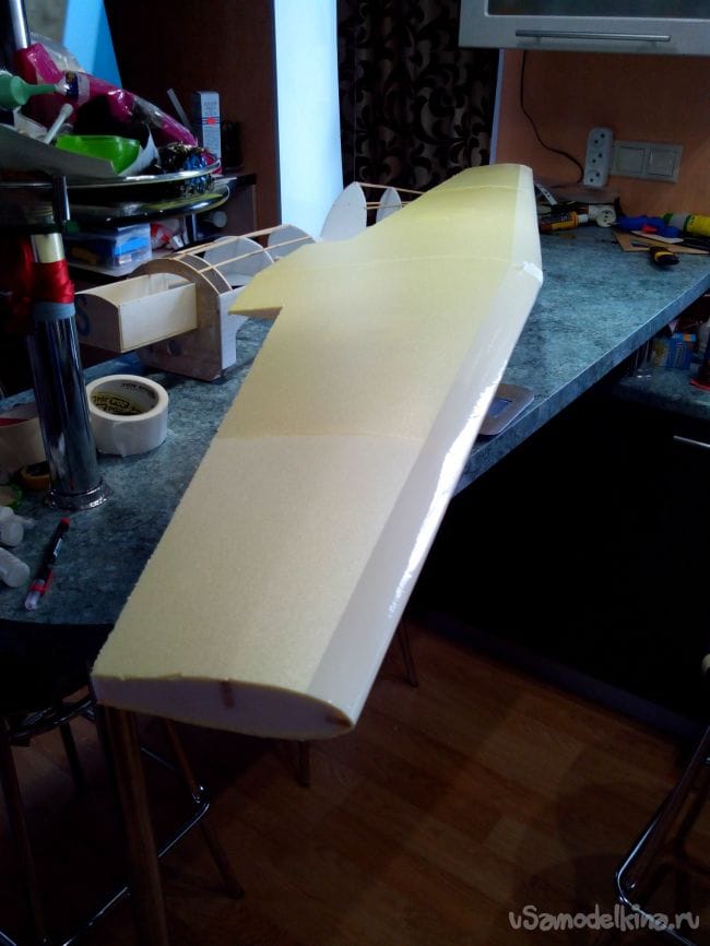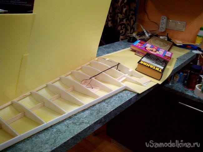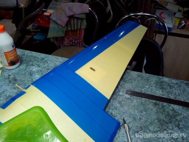 С обеих сторон на элероны наклеиваем депрон, которым обшито крыло.