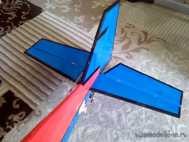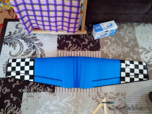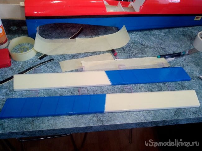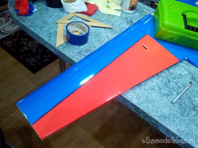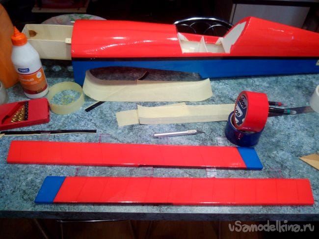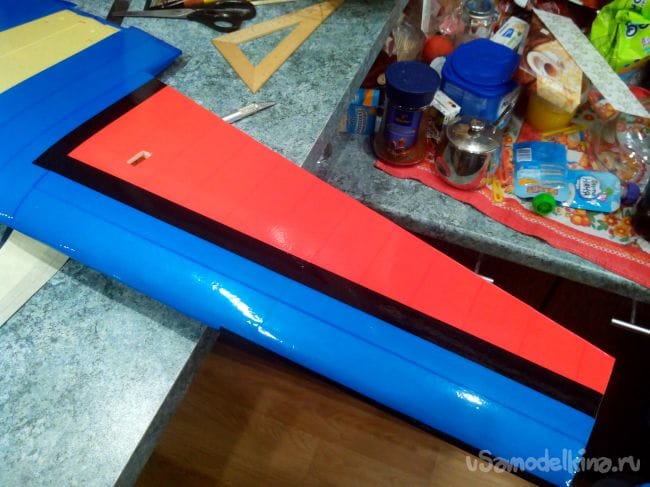 Элероны обклеиваем, продолжая цвета крыла на них.