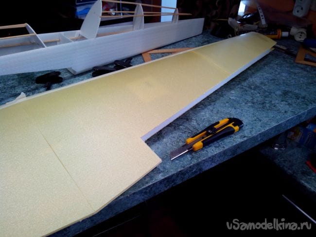 Так же обрезаем депрон на второй половине крыла.