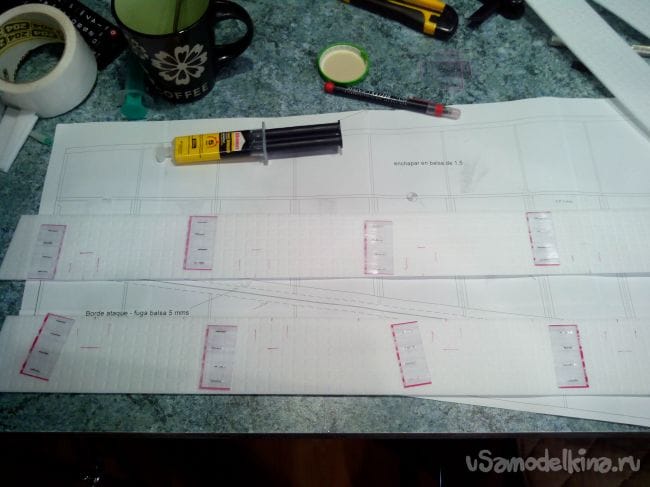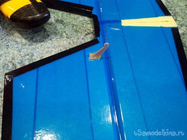 Вклеиваем элероны эпоксидным клеем.