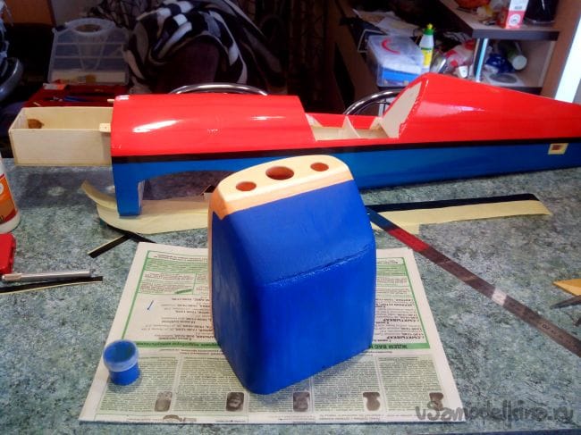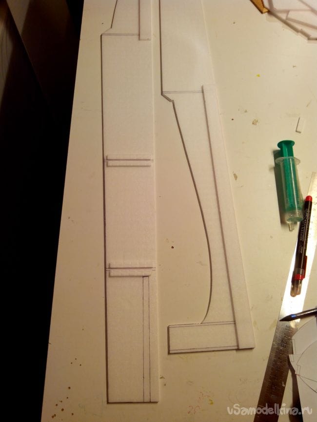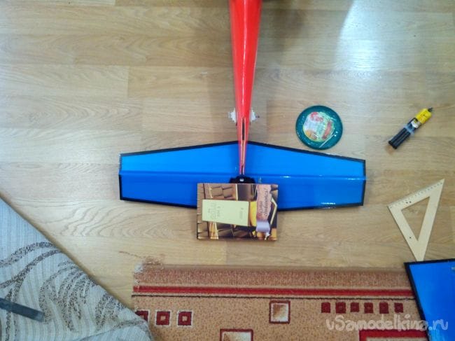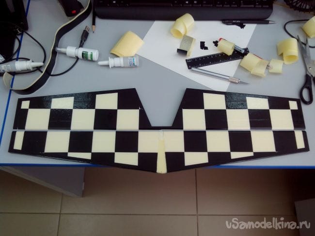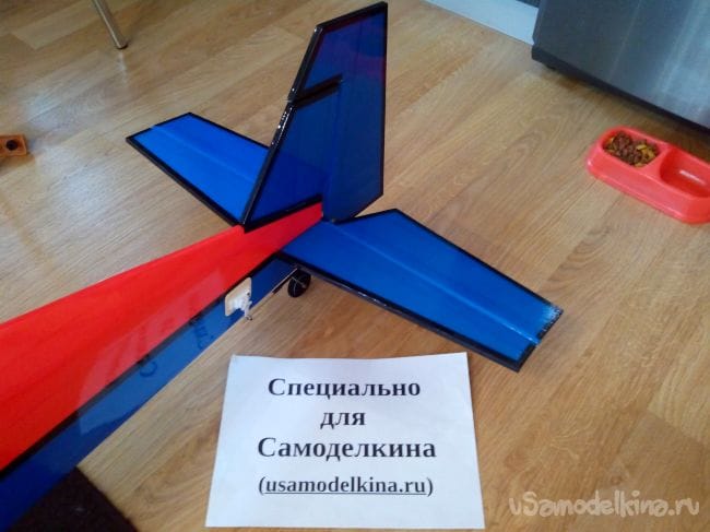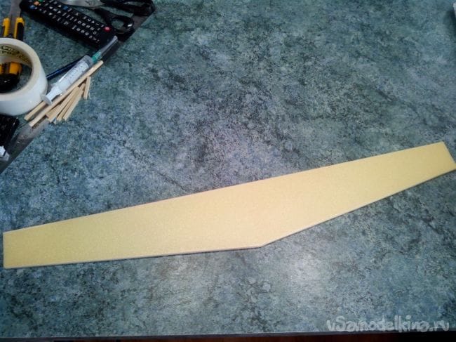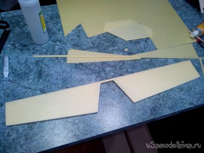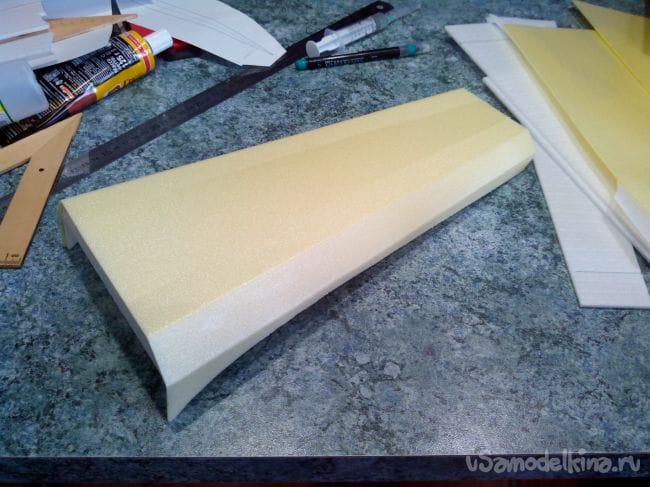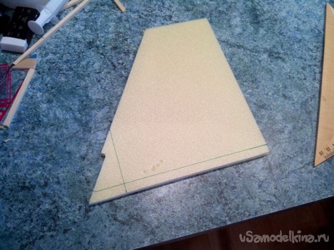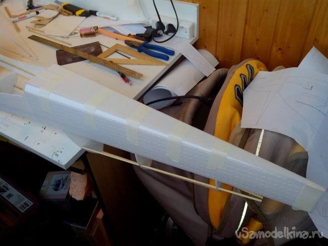 Затем обклеиваем полученные стабилизатор и киль с обеих сторон тонким депроном.