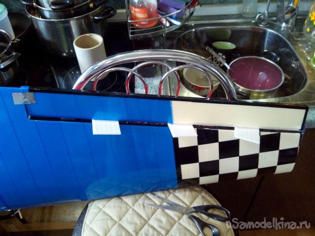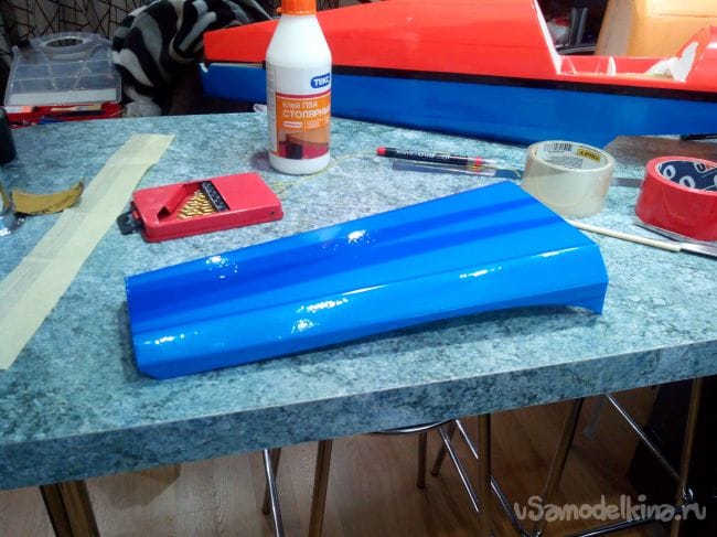Крышку под крыло обклеиваем синим.