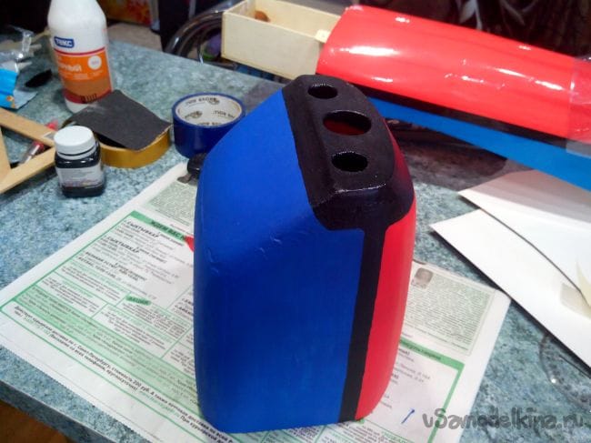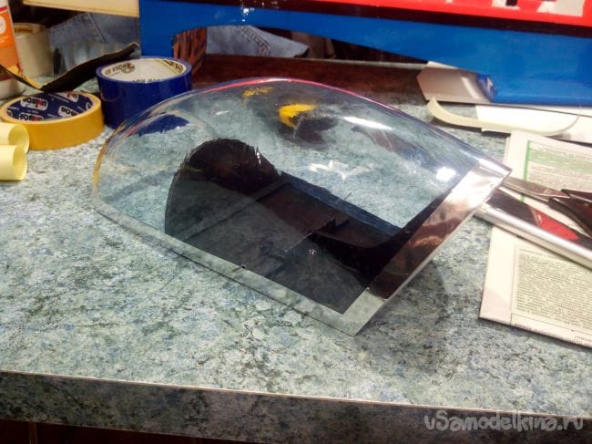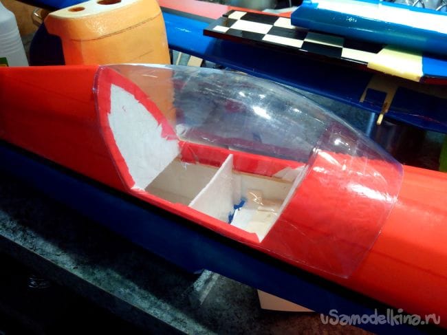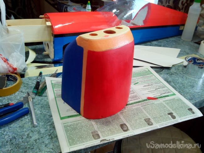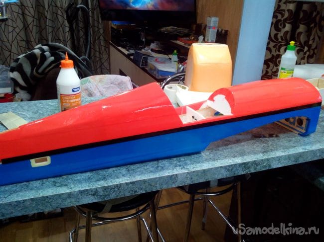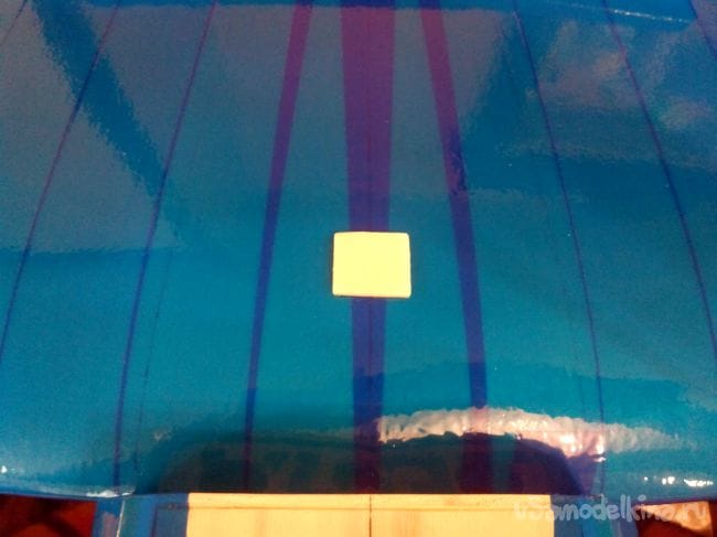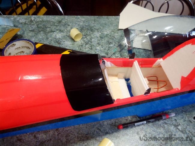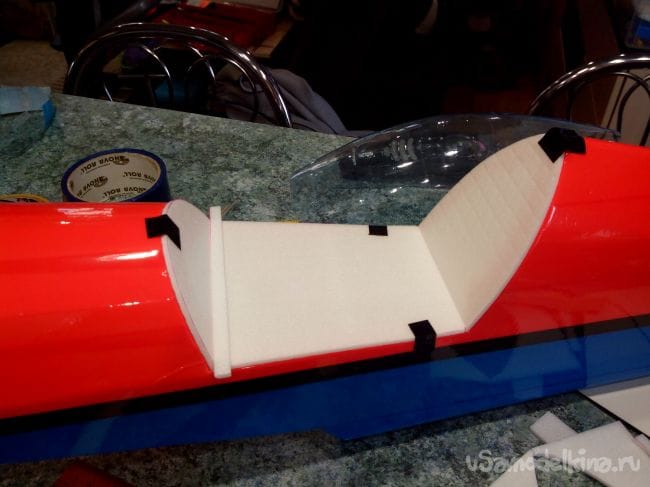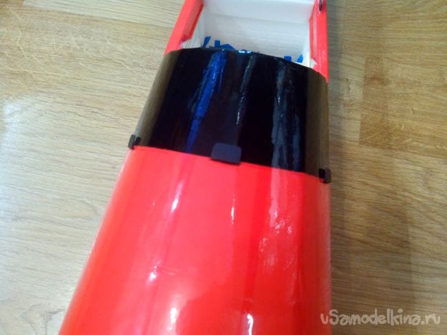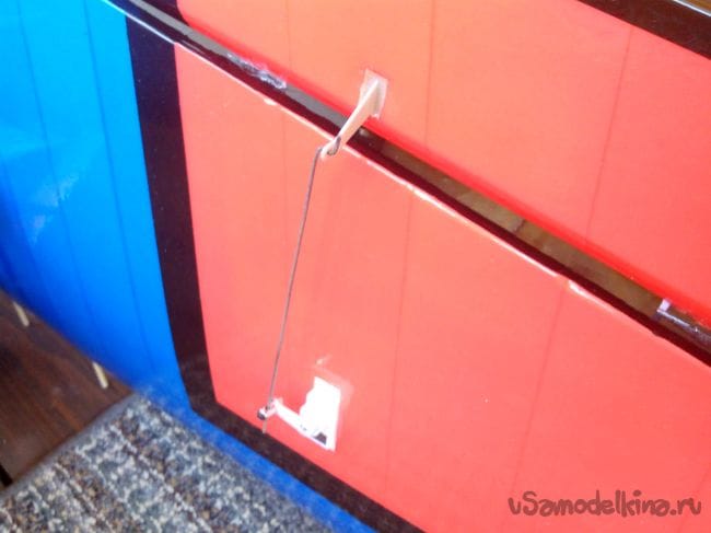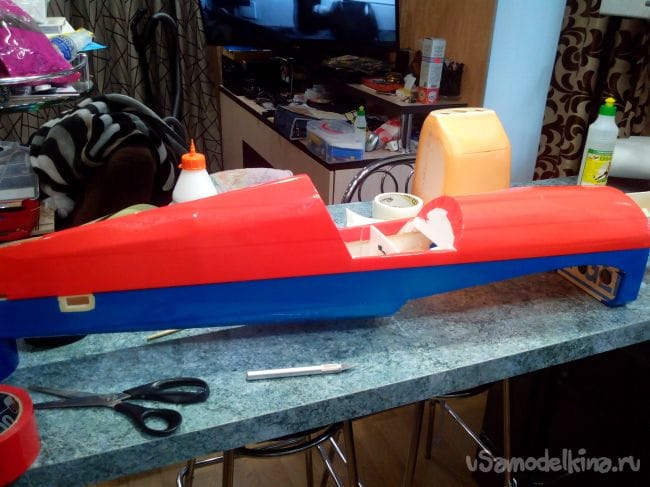 Скотчем фюзеляж обклеиваем под цвет крыла.