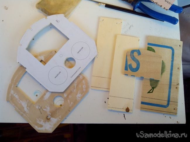 Когда клей высохнет, начинаем обрезать резаком лишнее и делаем отверстия по фанерной передней части.