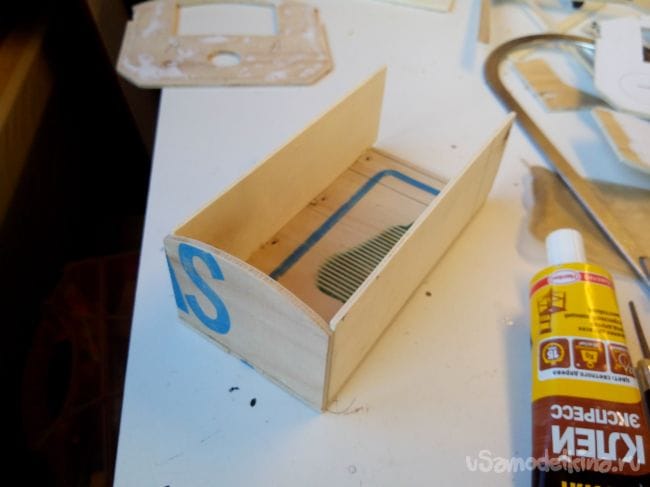 Вклеиваем для жесткости еще одну деталь в крышку.