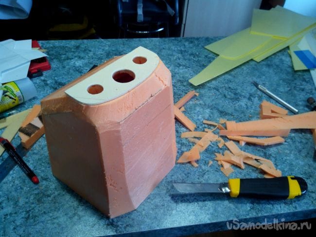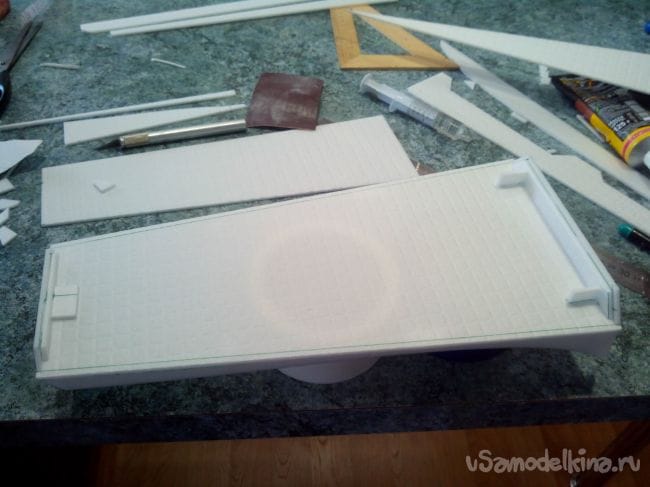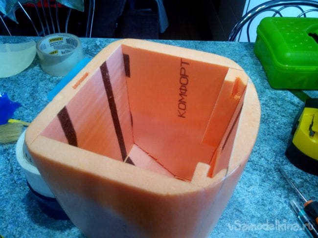 Вклеиваем внутренние части из потолочки.