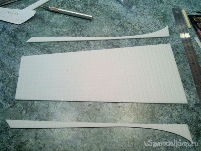Из потолочки вырезаем внутренние части стабилизатора.