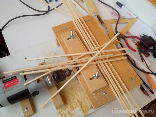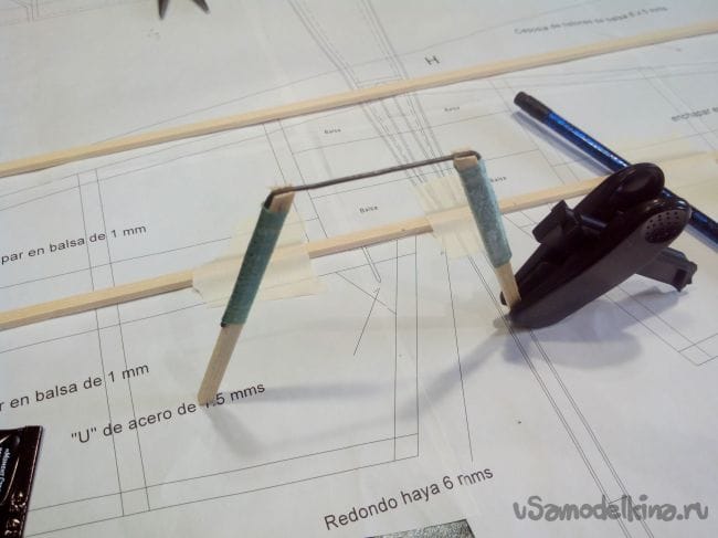 Тяги делаем из бамбуковых шпажек и проволоки.