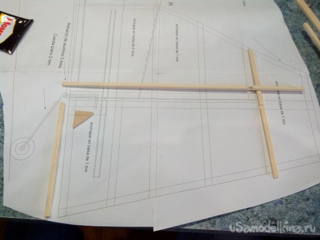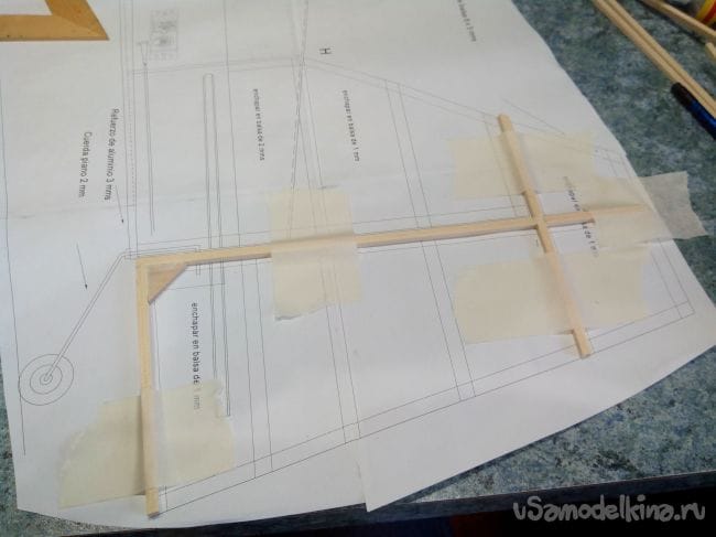 Каркас руля направления собираем из реек и кусочка фанеры.