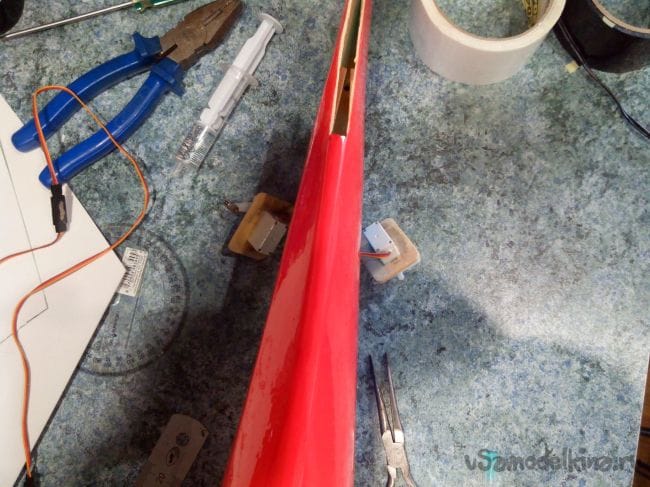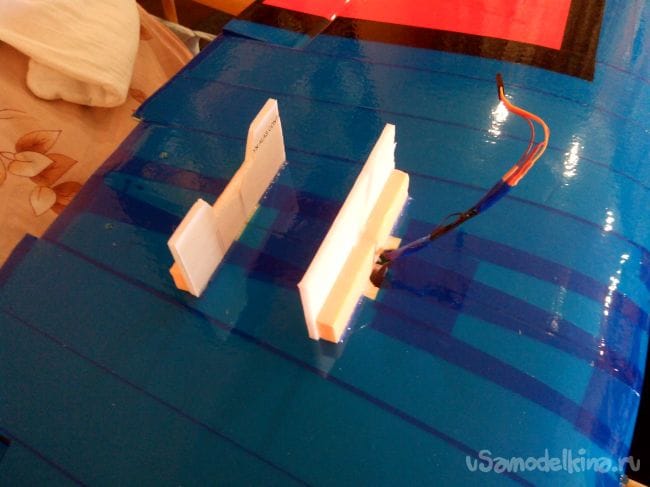 Вклеиваем хвостовые сервоприводы.